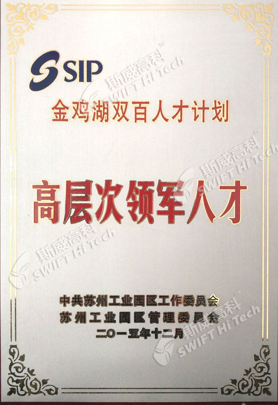 金雞湖雙百人才計(jì)劃 科技領(lǐng)軍人才 證書(shū)