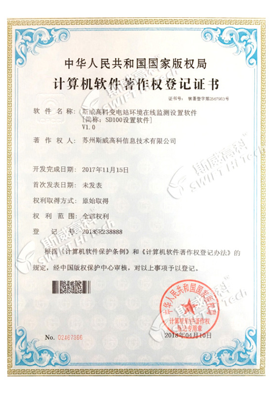 斯威高科變電站環(huán)境在線監(jiān)測(cè)設(shè)置軟件V1.0[簡(jiǎn)稱:SD100設(shè)置軟件]