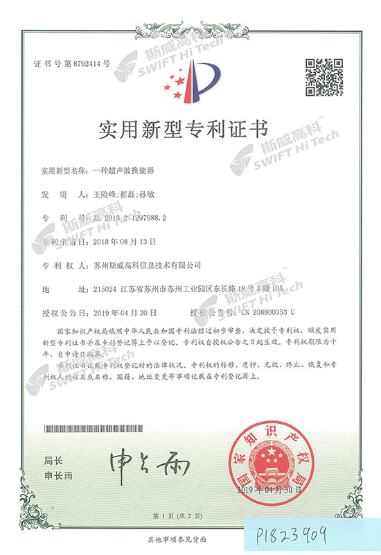 實(shí)用新型專利證書(shū):一種超聲波換能器