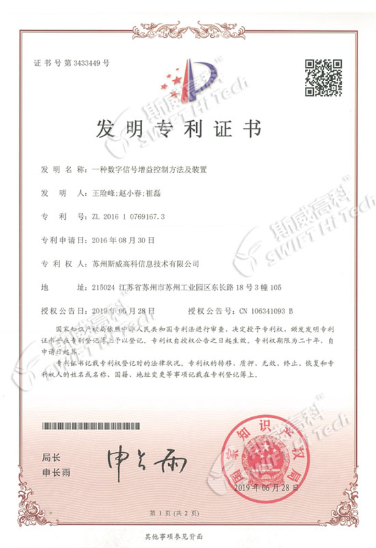 發(fā)明專利證書(shū):一種導(dǎo)電滑環(huán)及信號(hào)控制方法